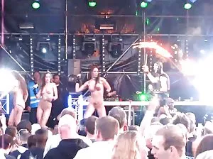 戴面具的人在一个被捆绑的奴隶的嘴里撒尿