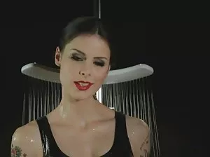 性感的女孩在游泳衣吸吮兄弟家伙在浴室