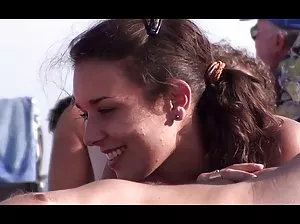 淘气的金发女郎脱下紧身衣, 将屁股暴露在节目中