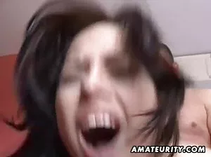 男子把他的公鸡靠在他的嘴里与他年轻的妻子和性交她在床上。